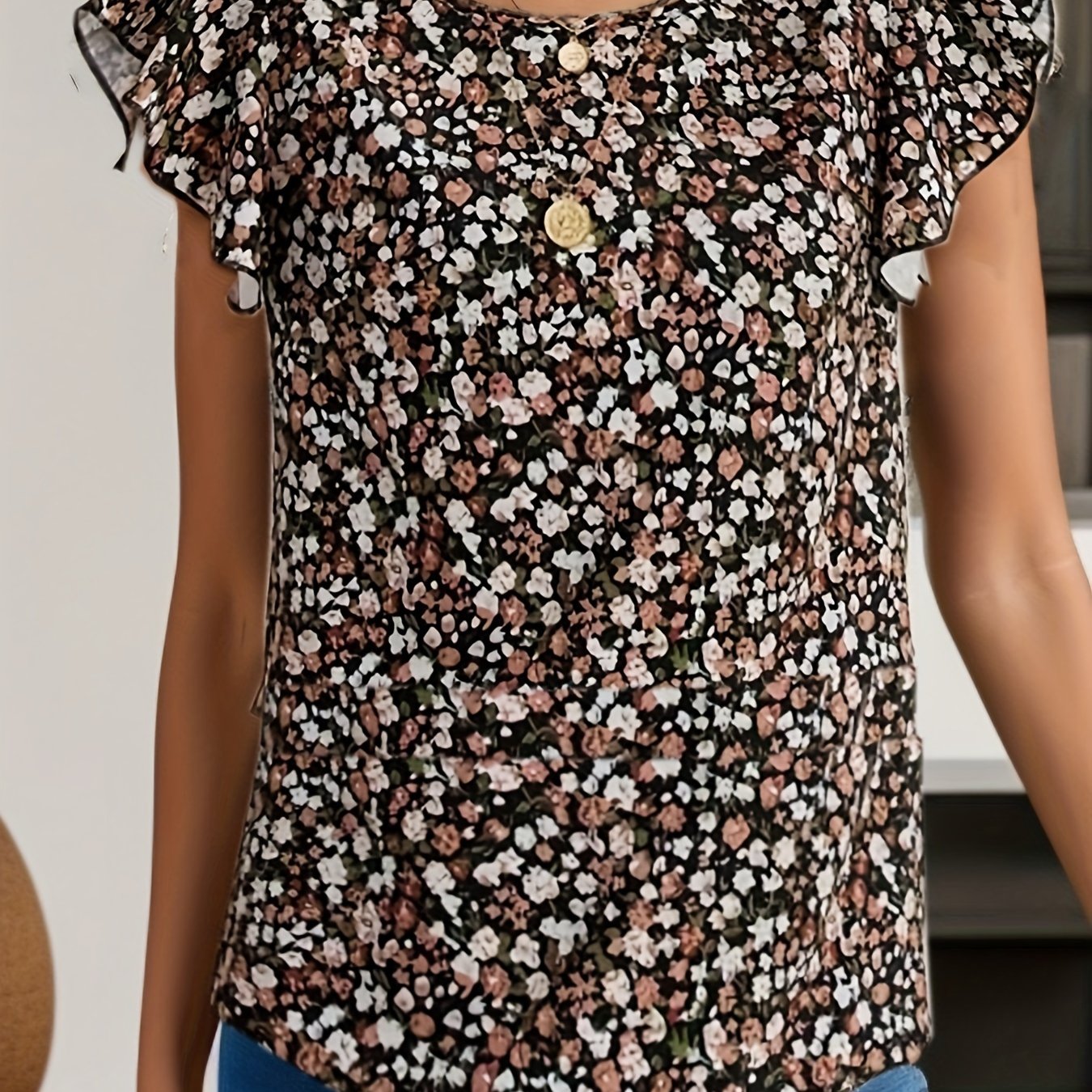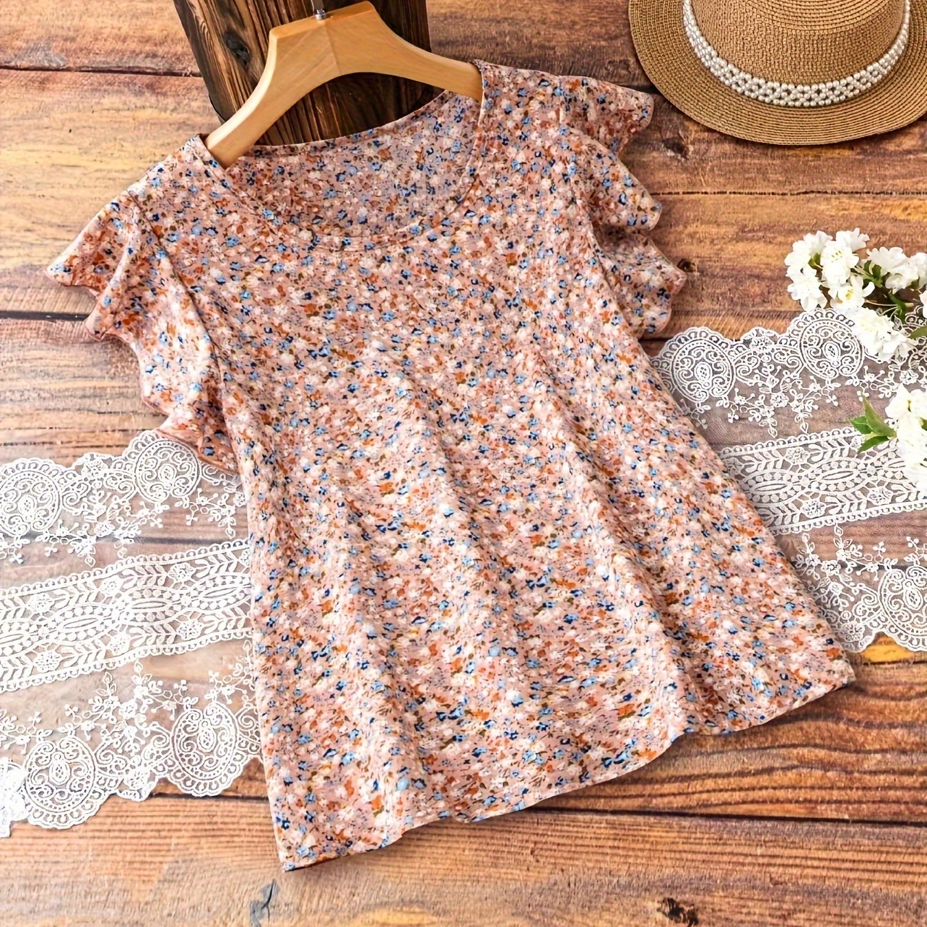 i can say is that Ditsy Floral Print Blouse, Elegant Round Neck Summer Blouse, Women’s Clothing is great. I like it.