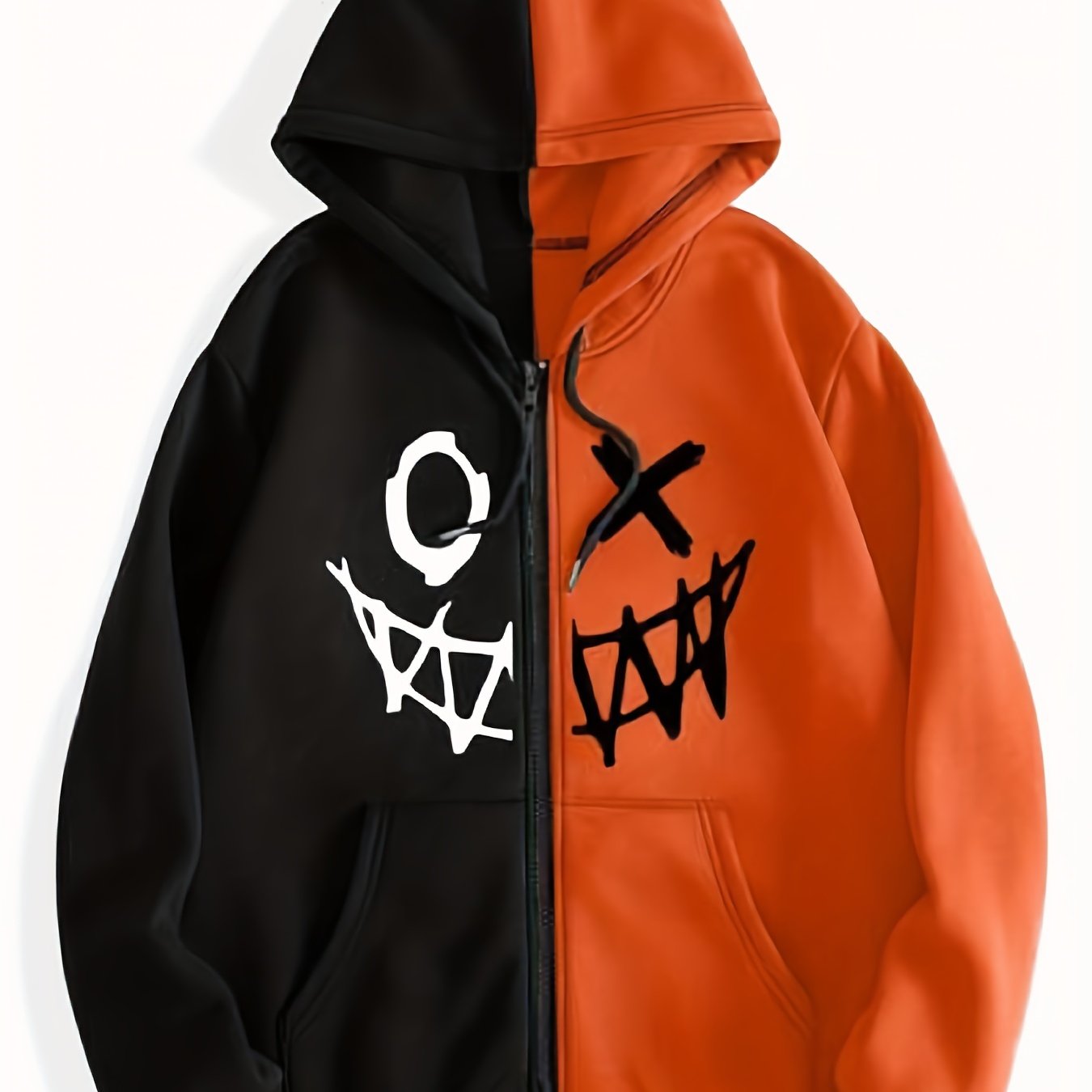 Grimace Print Zip Up Hoodie – Men’s Casual Color Block Hooded Sweatshirt Jacket