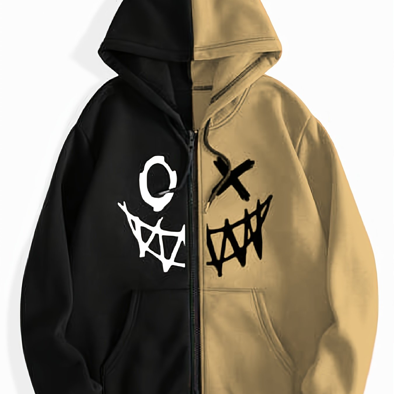 grimace print zip up hoodie mens casual stretch color block hooded sweatshirt jacket mens sportswear details 1