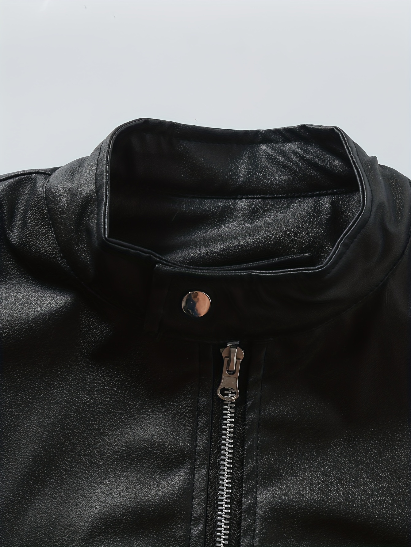 Men’s PU Leather Motorcycle Jacket Coat with Zipper Cardigan and Stand Collar