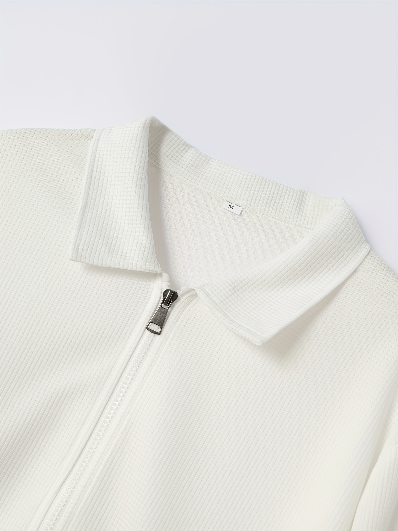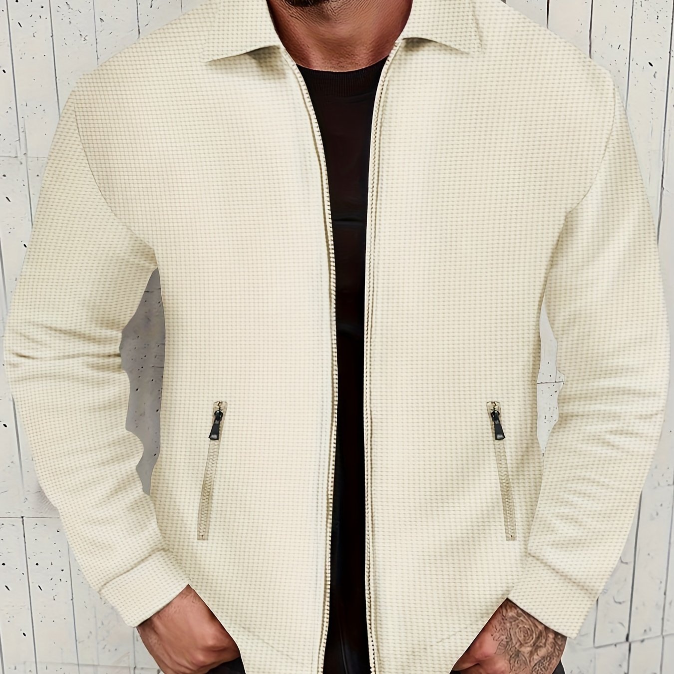 Men’s Retro Vintage Waffle Pattern Zip Up Jacket – Casual College Hipster Windbreaker for Spring and Fall