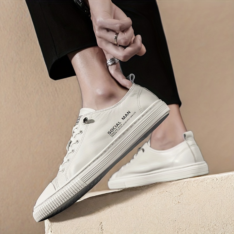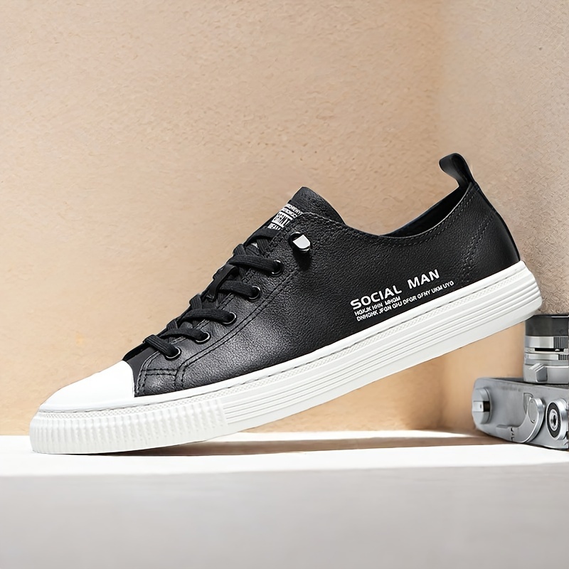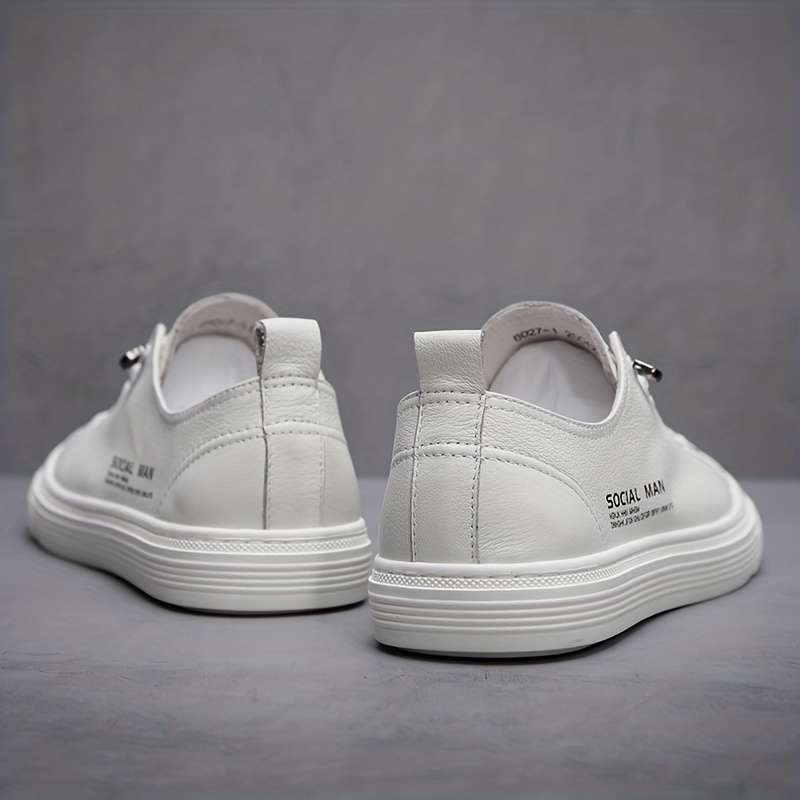 leather skate shoes men s solid casual slip walking sneakers details 3