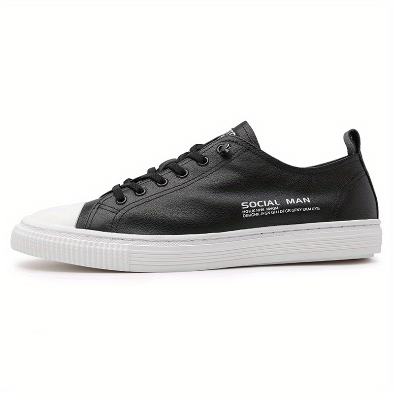 leather skate shoes men s solid casual slip walking sneakers details 4