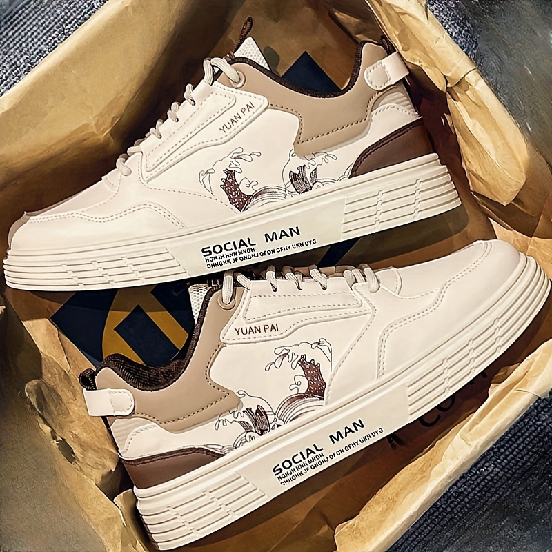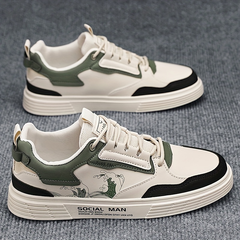 mens trendy street style color block low top skateboard shoes comfy non slip casual lace up sneakers for mens outdoor activities men s shoes temu details 0