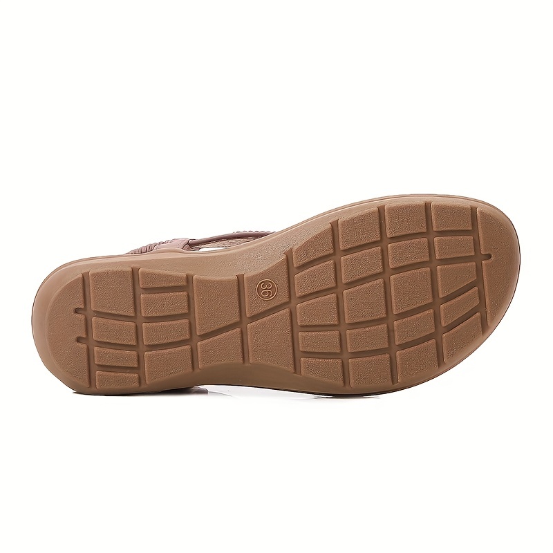 Women’s Comfy Summer Flats: Durable Faux Leather Flat Sandals with Stylish Strappy Back, Round Toe & Wear-Resistant Design